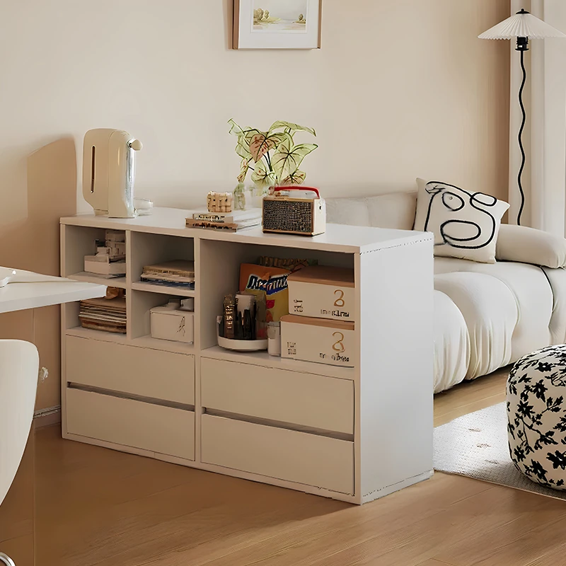 Cream Style Bookshelf Storage Cabinet for Living Room - Versatile Sofa Side Cabinet, Japanese-Inspired Modular Design for Home Organization and Stylish Décor