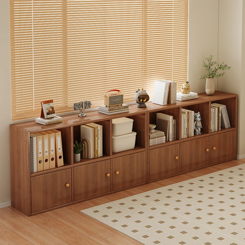 Mid-Century Walnut Low Bookcase - Stylish Wall-Mounted Storage Cabinet for Living Room, Ideal for Bay Windows and Half-Wall Spaces, Perfect for Organizing Your Home with Chic Design