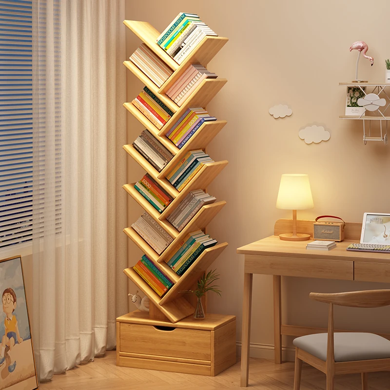 Creative Tree-Shaped Bookshelf - Floor Standing Storage Rack for Living Room, Simple Picture Book Holder for Desk or Corner, Narrow Book Cabinet for Bedroom