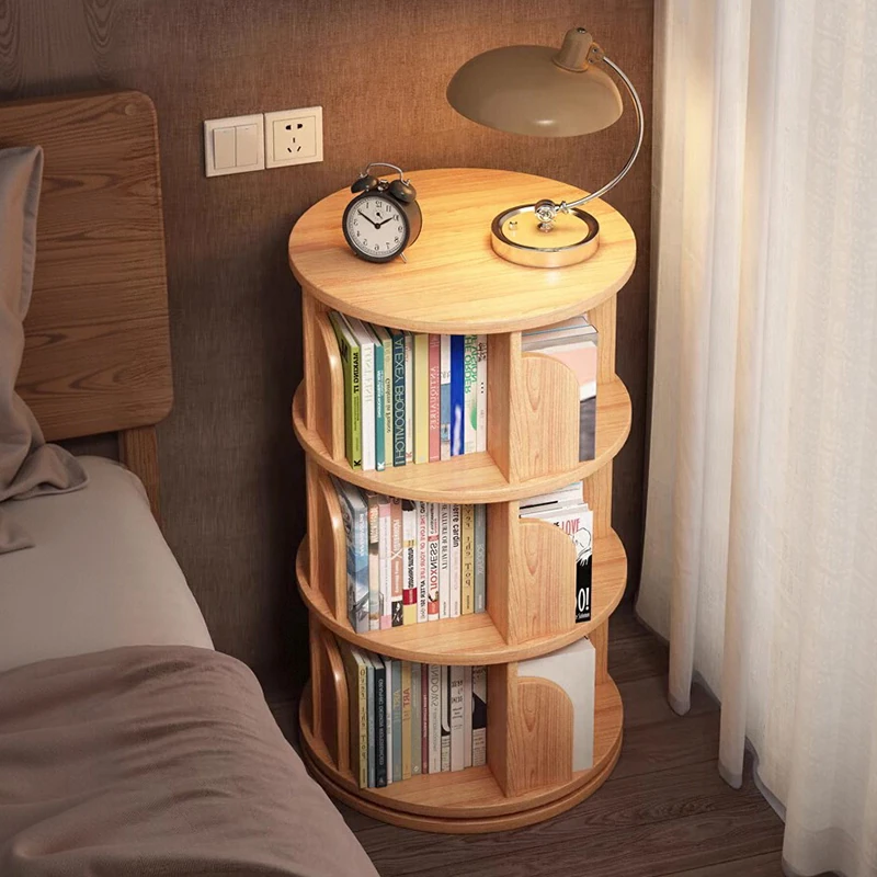360-Degree Rotating Bookshelf - Stylish Round Nightstand and Floor Storage Rack for Bedroom and Living Room, Perfect Wall-Mounted Organizer for Books and Décor