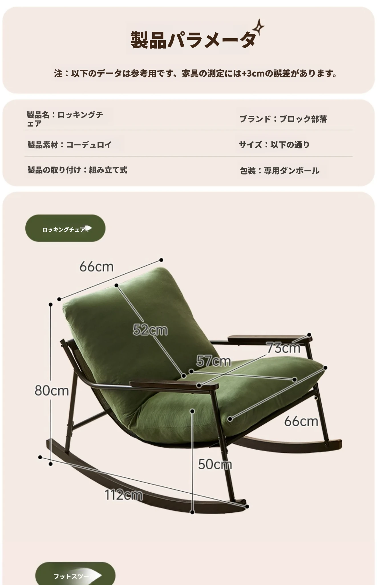 アイボリー(コーデュロイ生地)【取り外し可能】