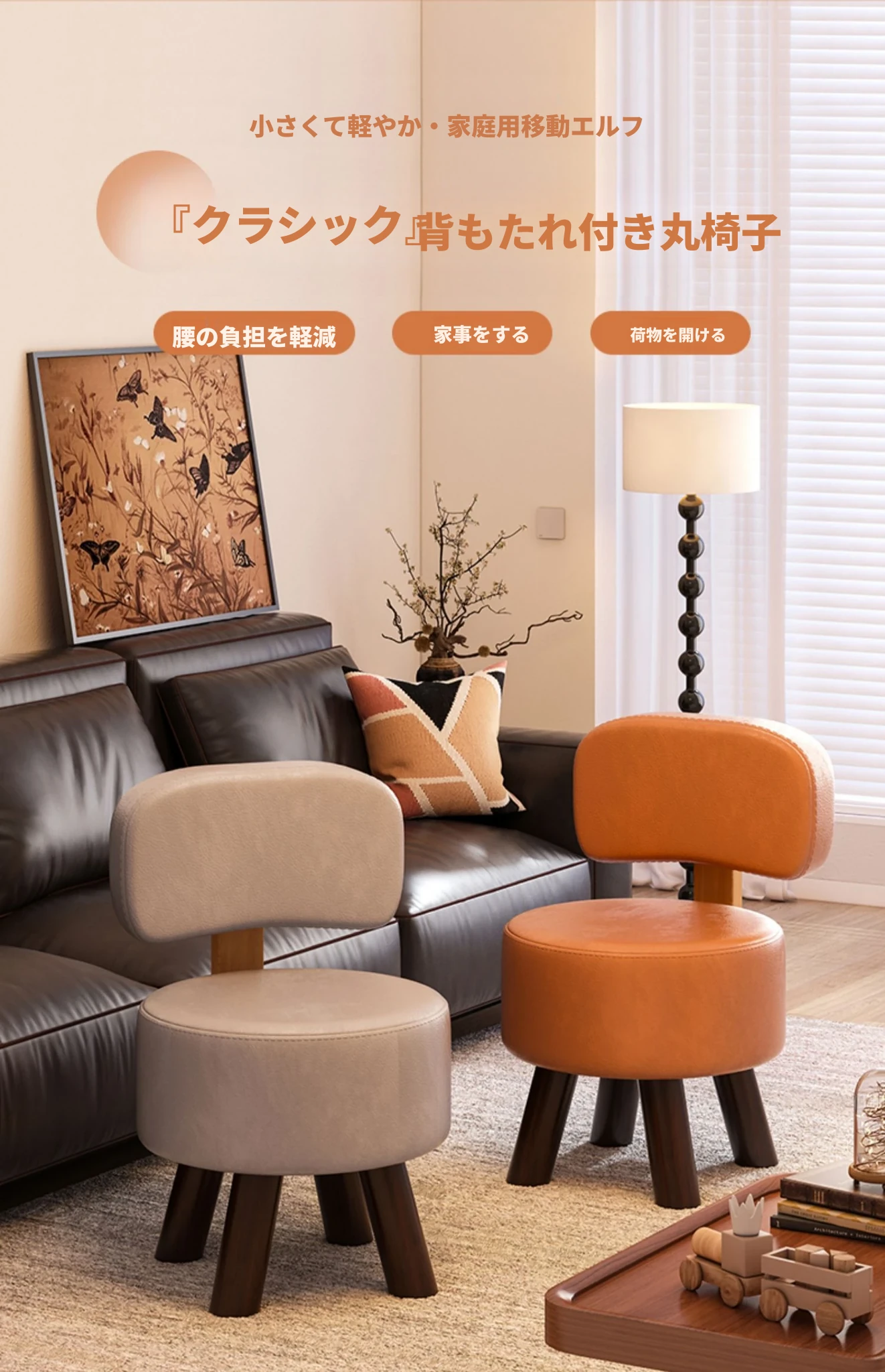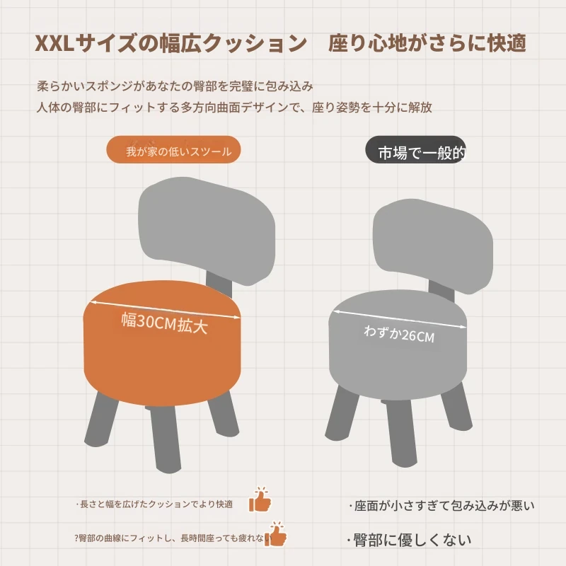 背もたれ付きの小さな椅子 - リビングにぴったりな頑丈なソファ用スツール。柔らかいクッションで快適な座り心地!おしゃれなデザインで、靴を履くときにも便利な家庭用スツール。あなたの生活空間に彩りを加えます!