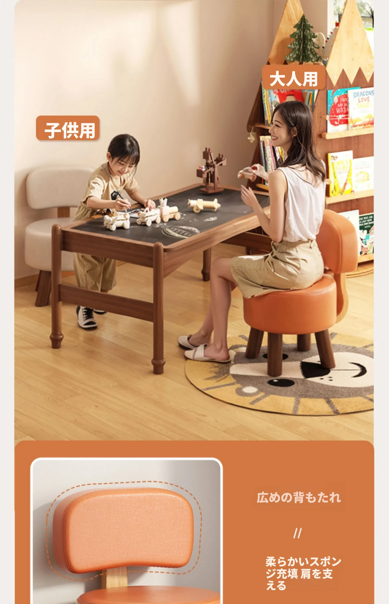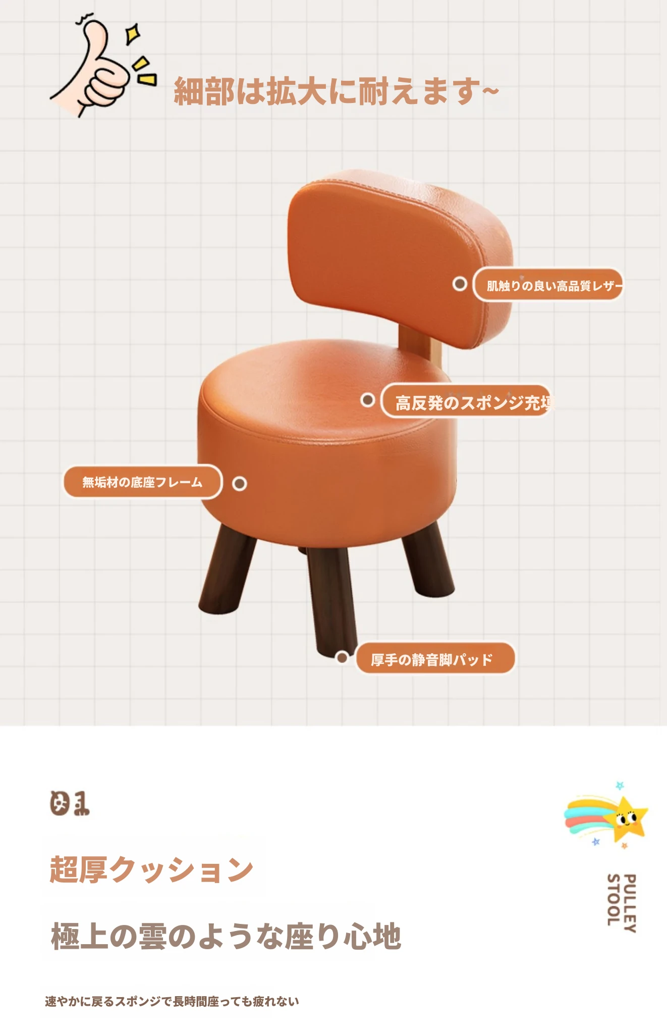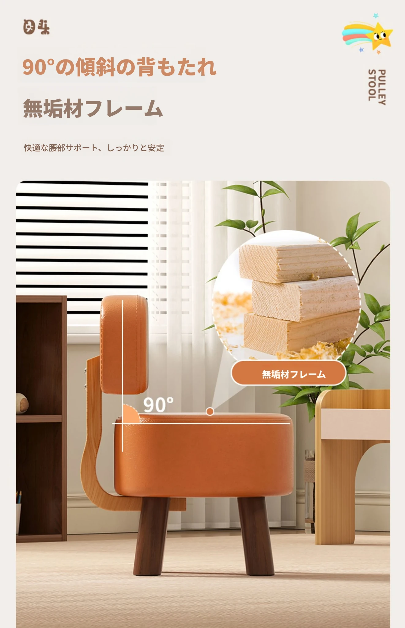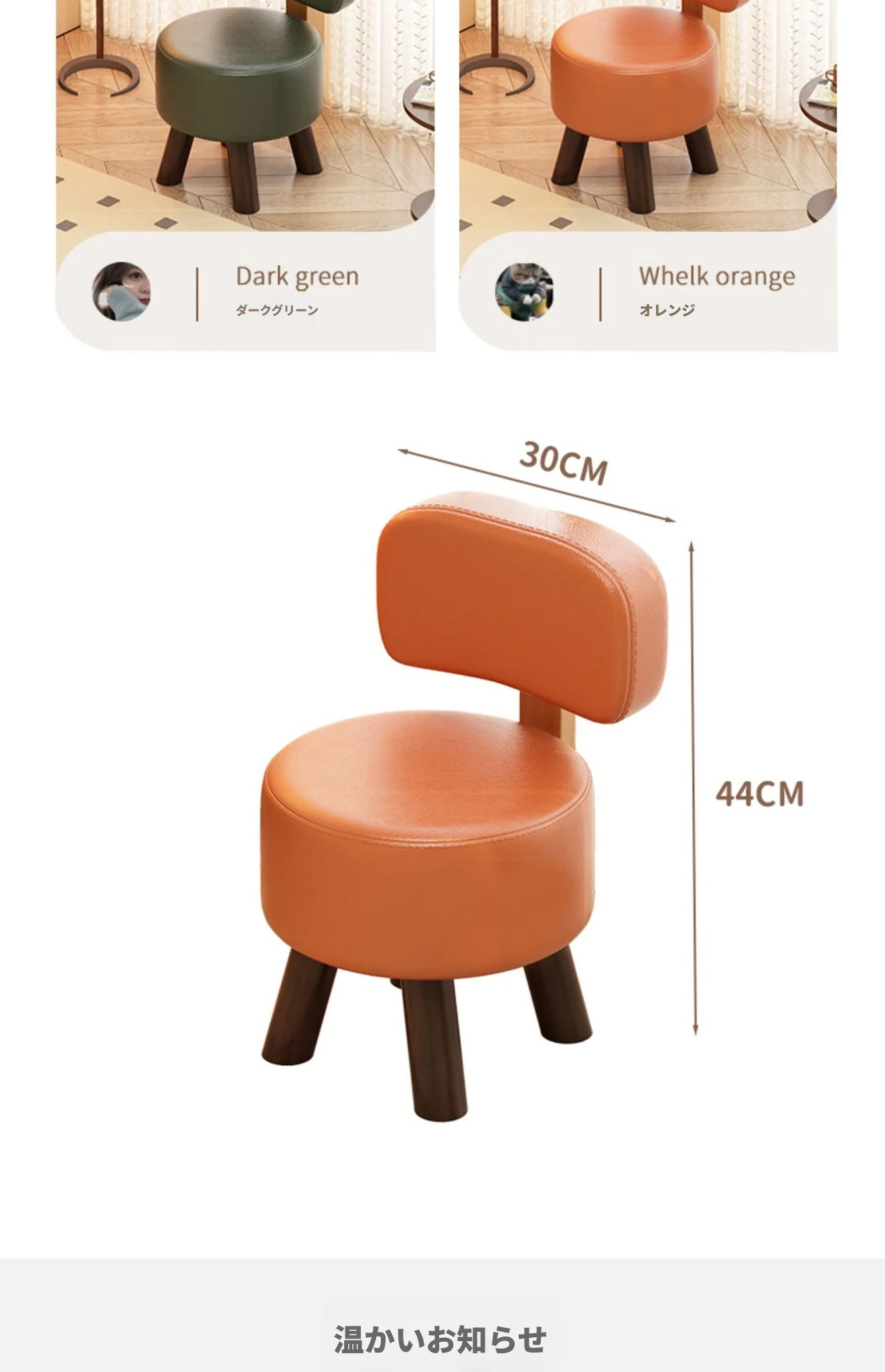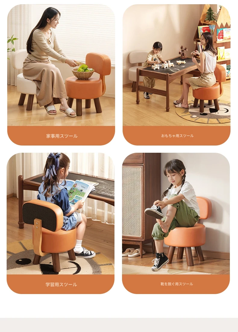アップグレード版!オレンジ色【太い無垢材+ダブルスポンジ】高さ44cm
