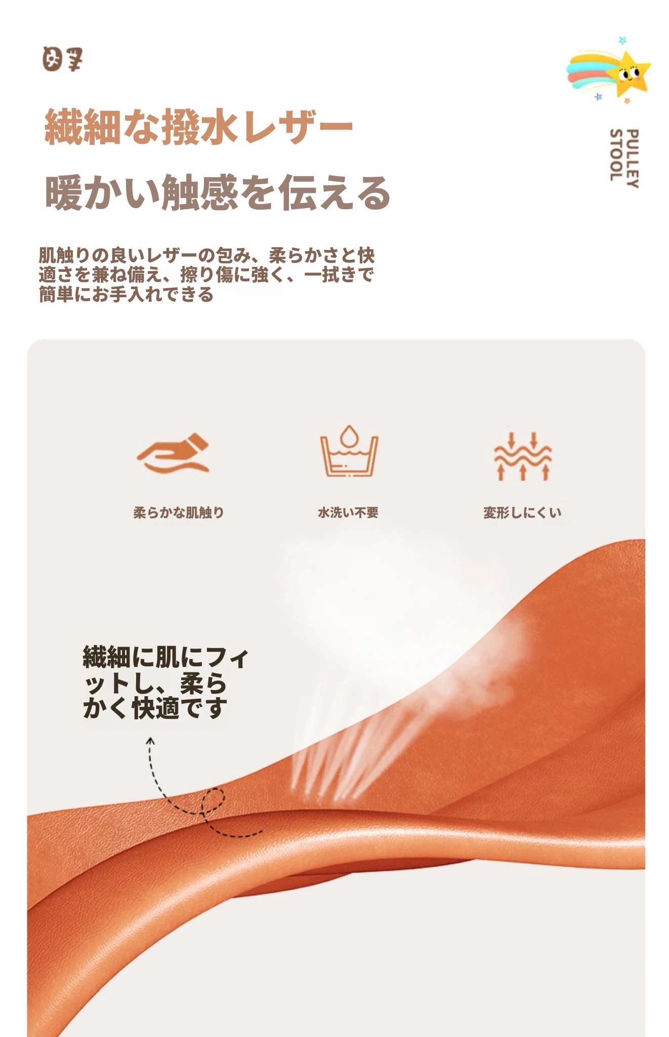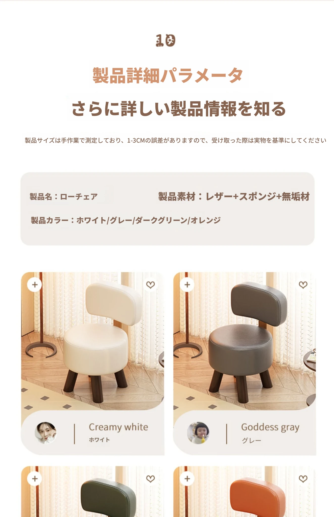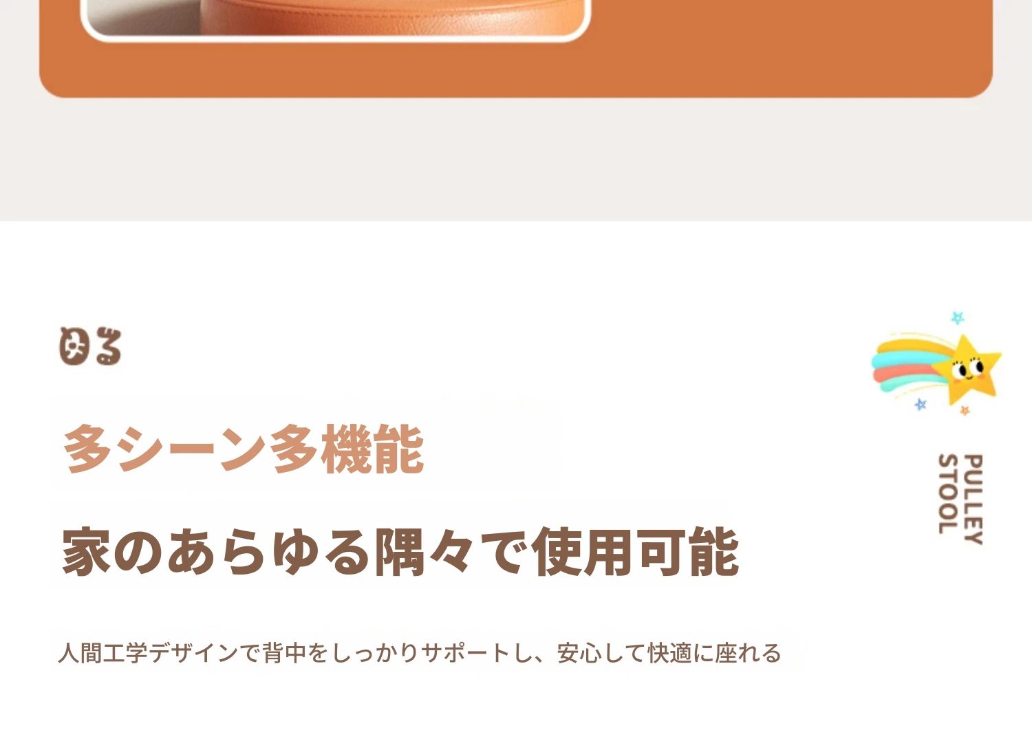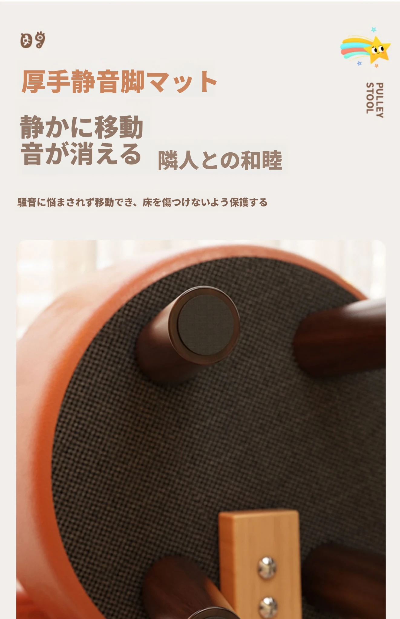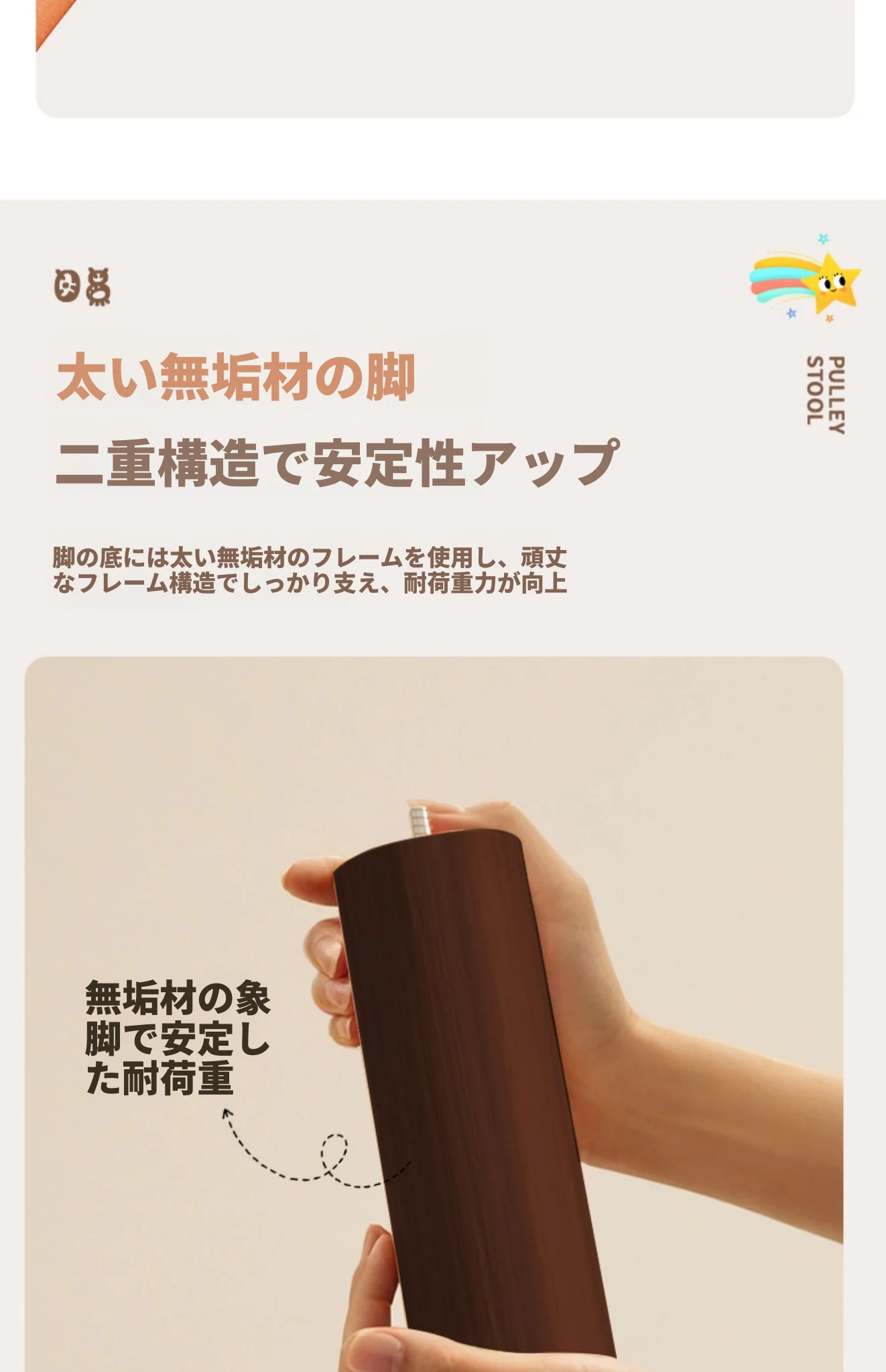 アップグレード版!オレンジ色【太い無垢材+ダブルスポンジ】高さ44cm