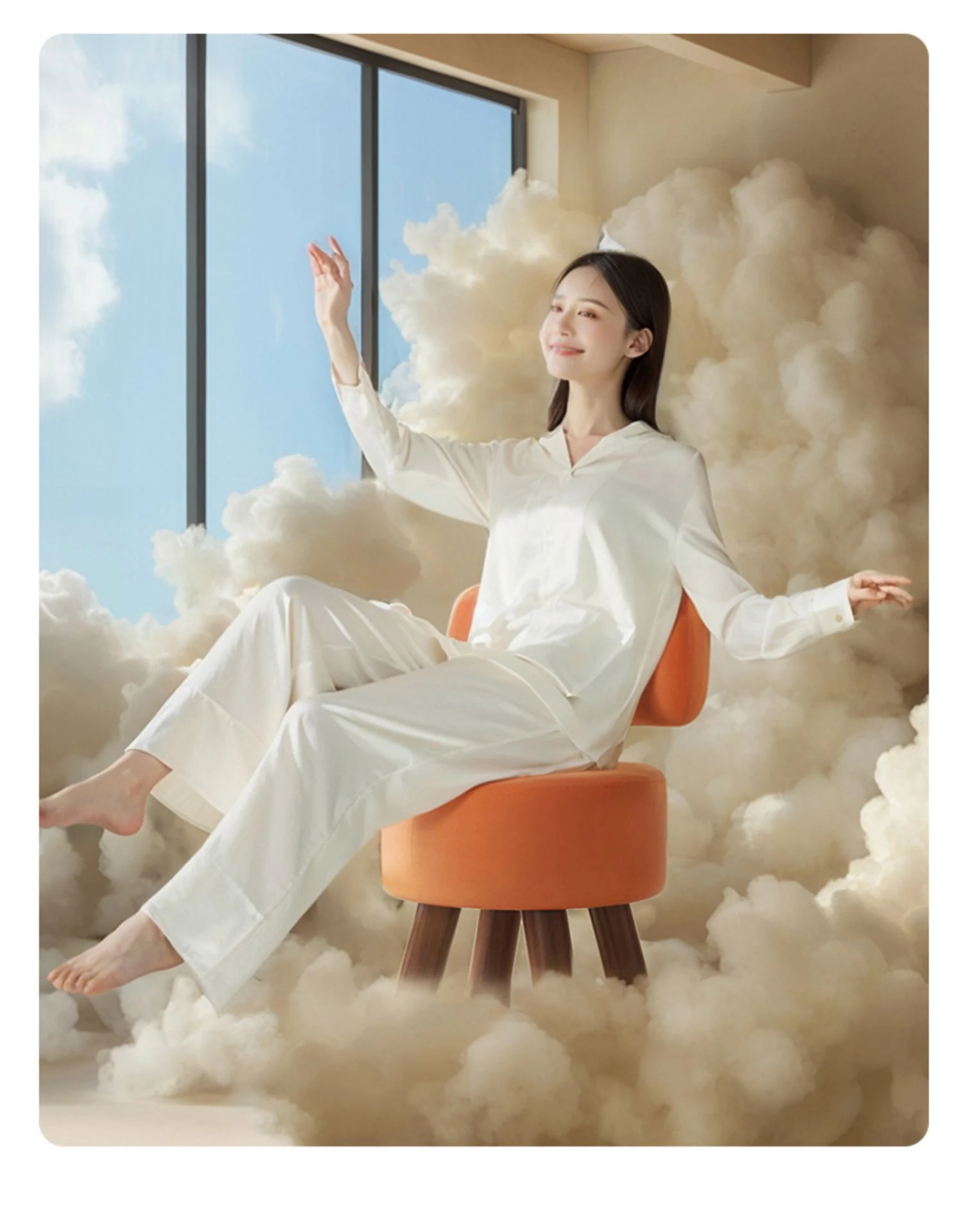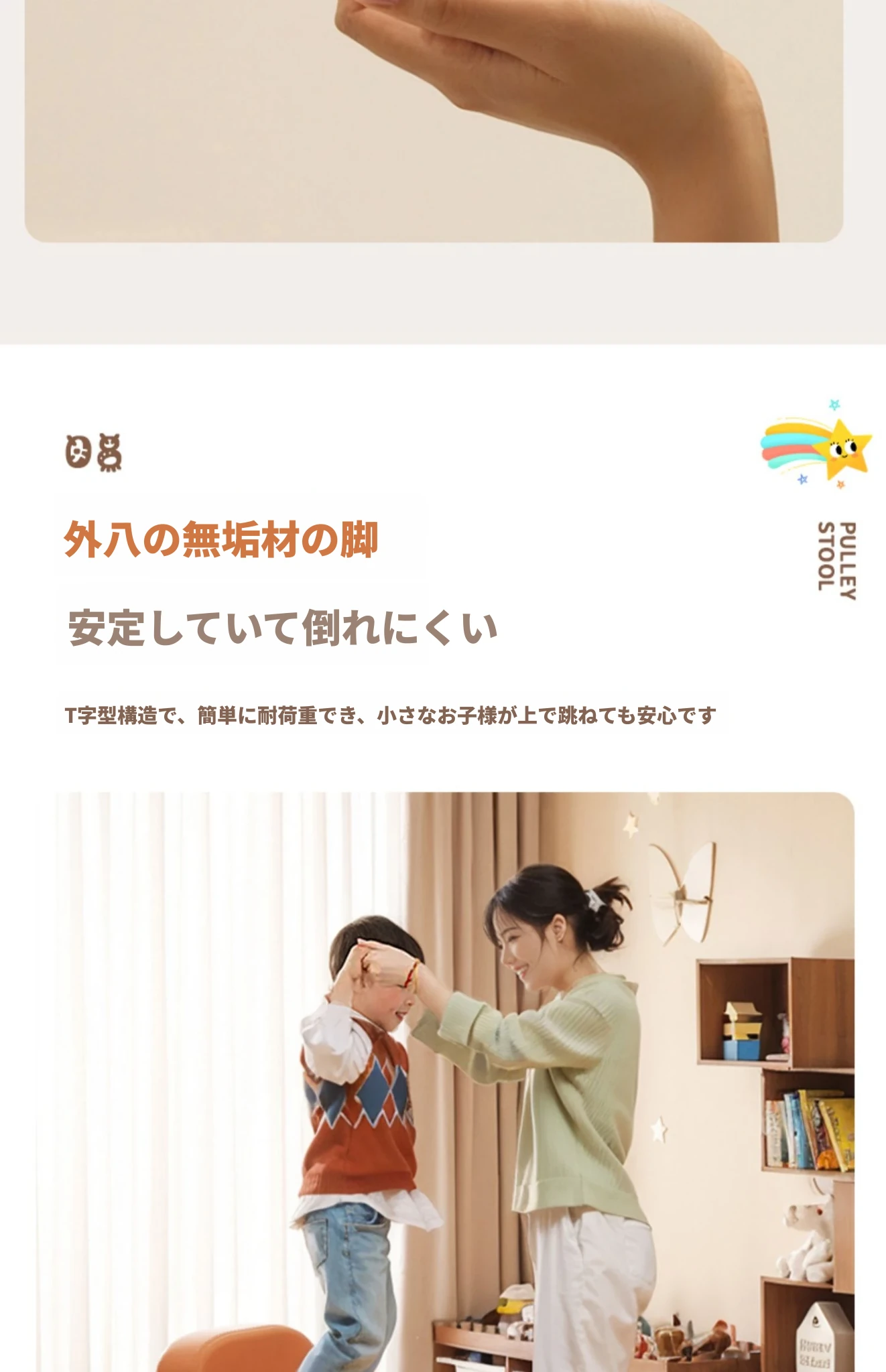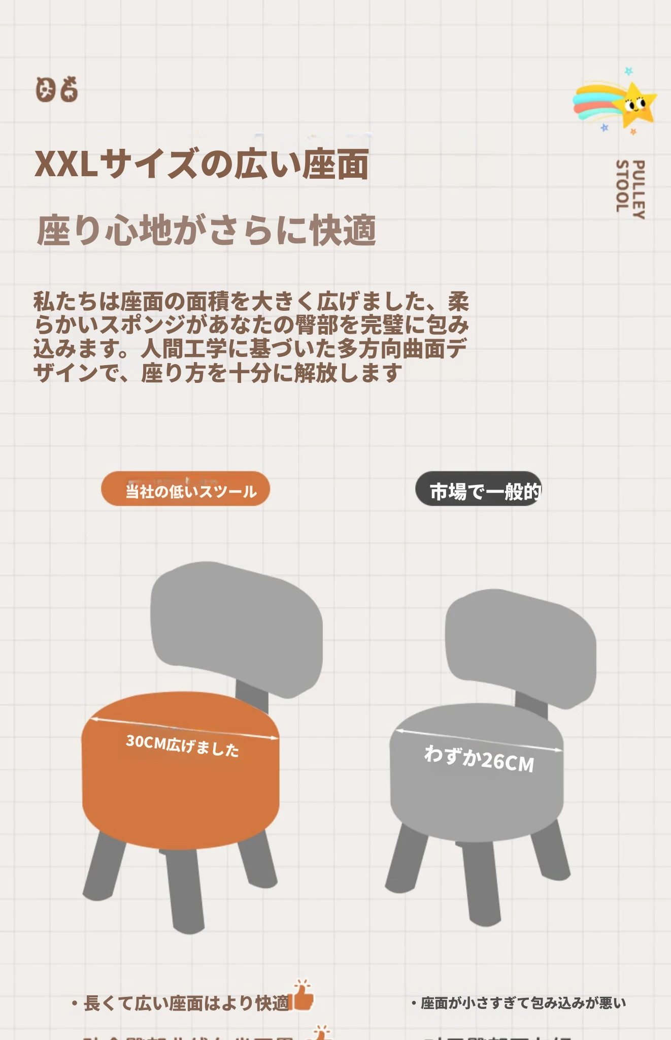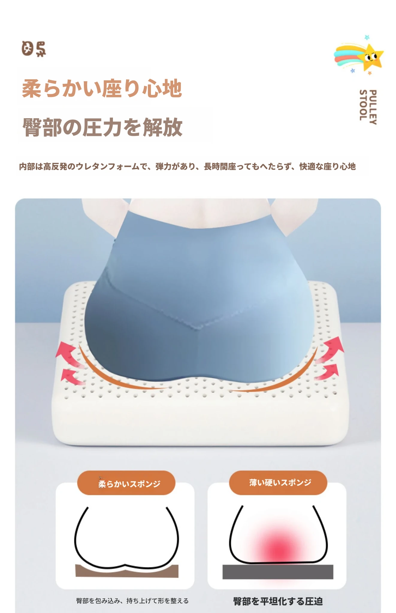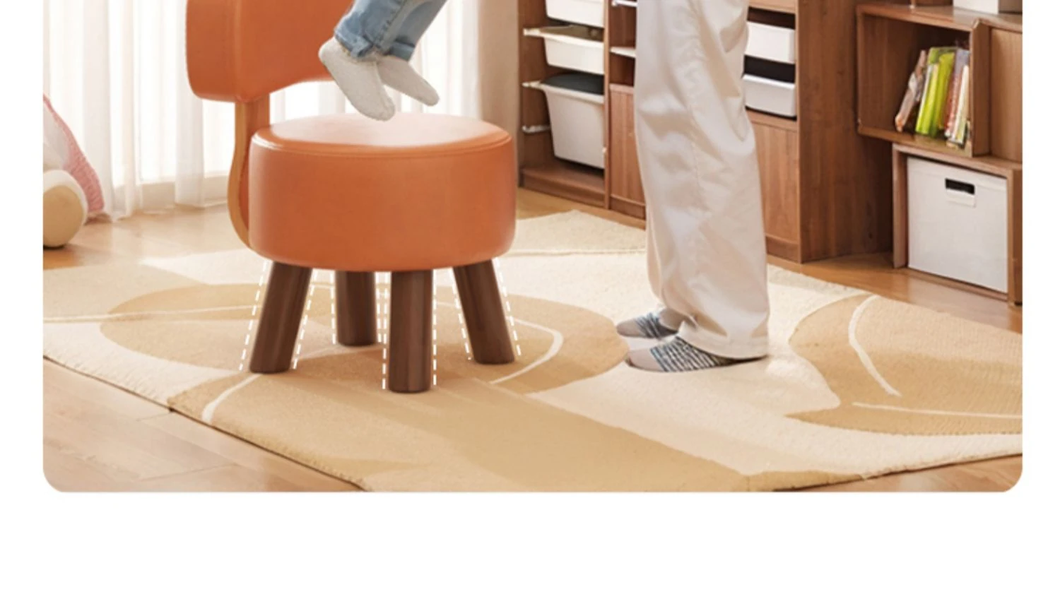 アップグレード版!オレンジ色【太い無垢材+ダブルスポンジ】高さ44cm