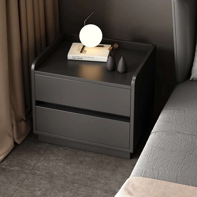 ブラックベッドサイドテーブル - シンプルでスタイリッシュな収納キャビネット、寝室にぴったりの軽やかなラグジュアリー感。快適な生活空間を演出する、あなたの理想のベッドサイドアイテム!