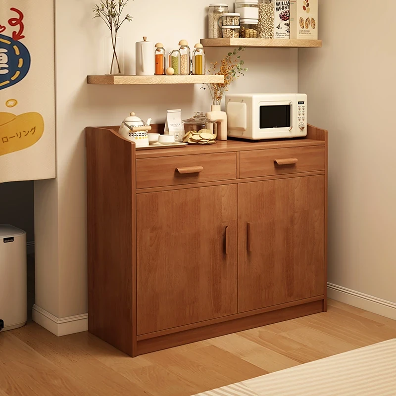 壁に寄せられる一体型収納キャビネット!家庭用キッチンキャビネット、天然木の温もりを感じる置物棚。地面にしっかりと固定され、収納力抜群のサイドキャビネットで、あなたの生活空間をスタイリッシュに整理整頓!