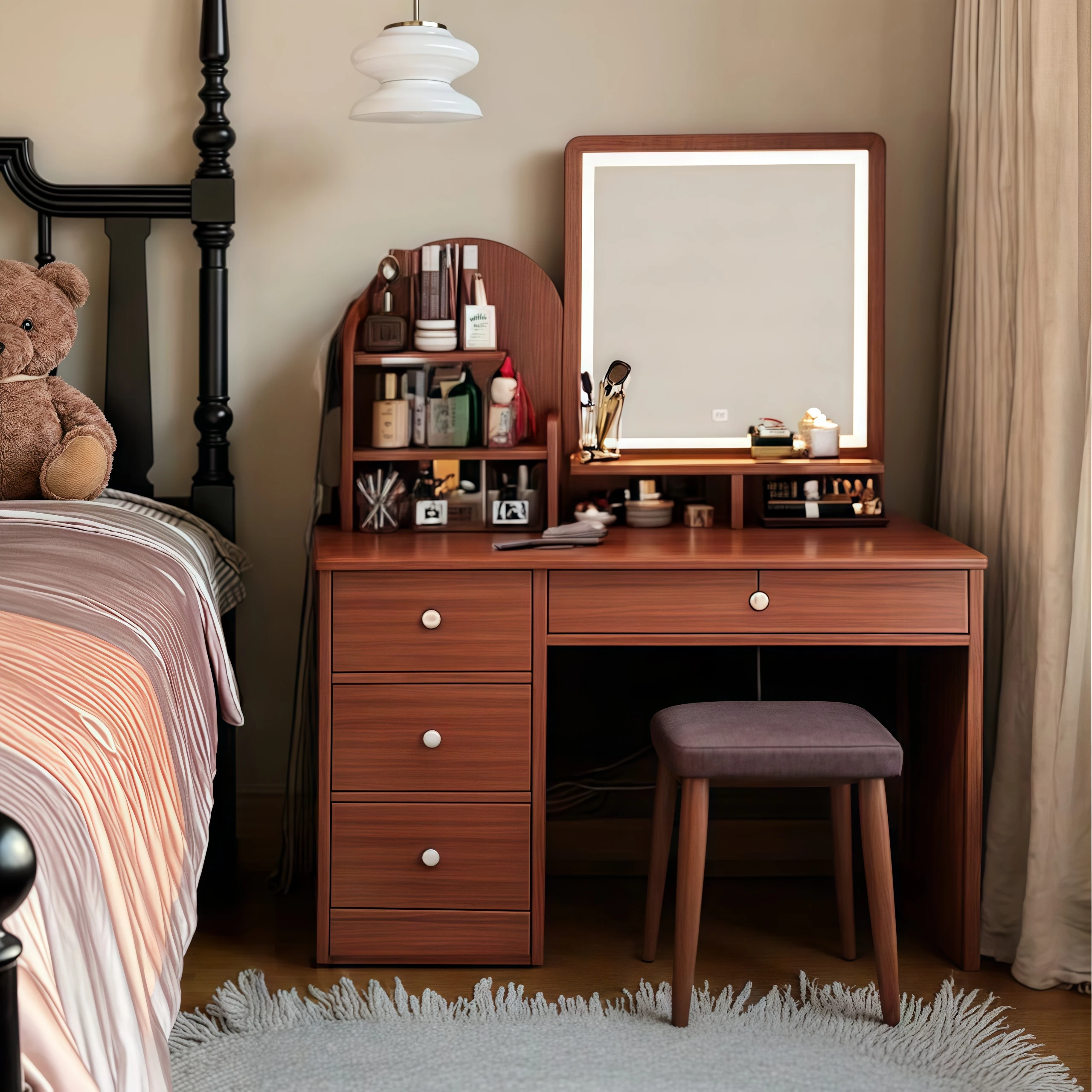 モダンでシンプルな2025年新作ドレッサーセット!小スペース向けの収納力抜群な化粧台&鏡付き。おしゃれな寝室を演出し、毎日のメイクアップをもっと楽しく!