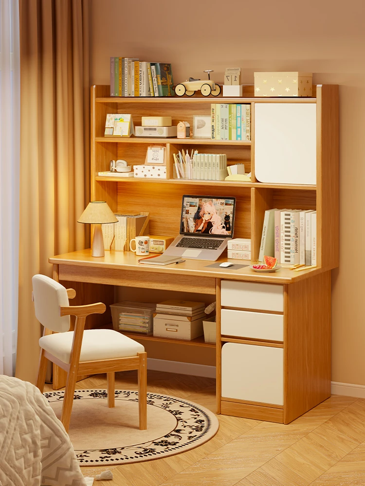 小学生・中学生向け!壁にぴったりフィットする学習デスク兼書棚。女の子のためのスタイリッシュなデザインで、家での学びや仕事を快適にサポートします。勉強や書き物に最適なスペースを提供!
