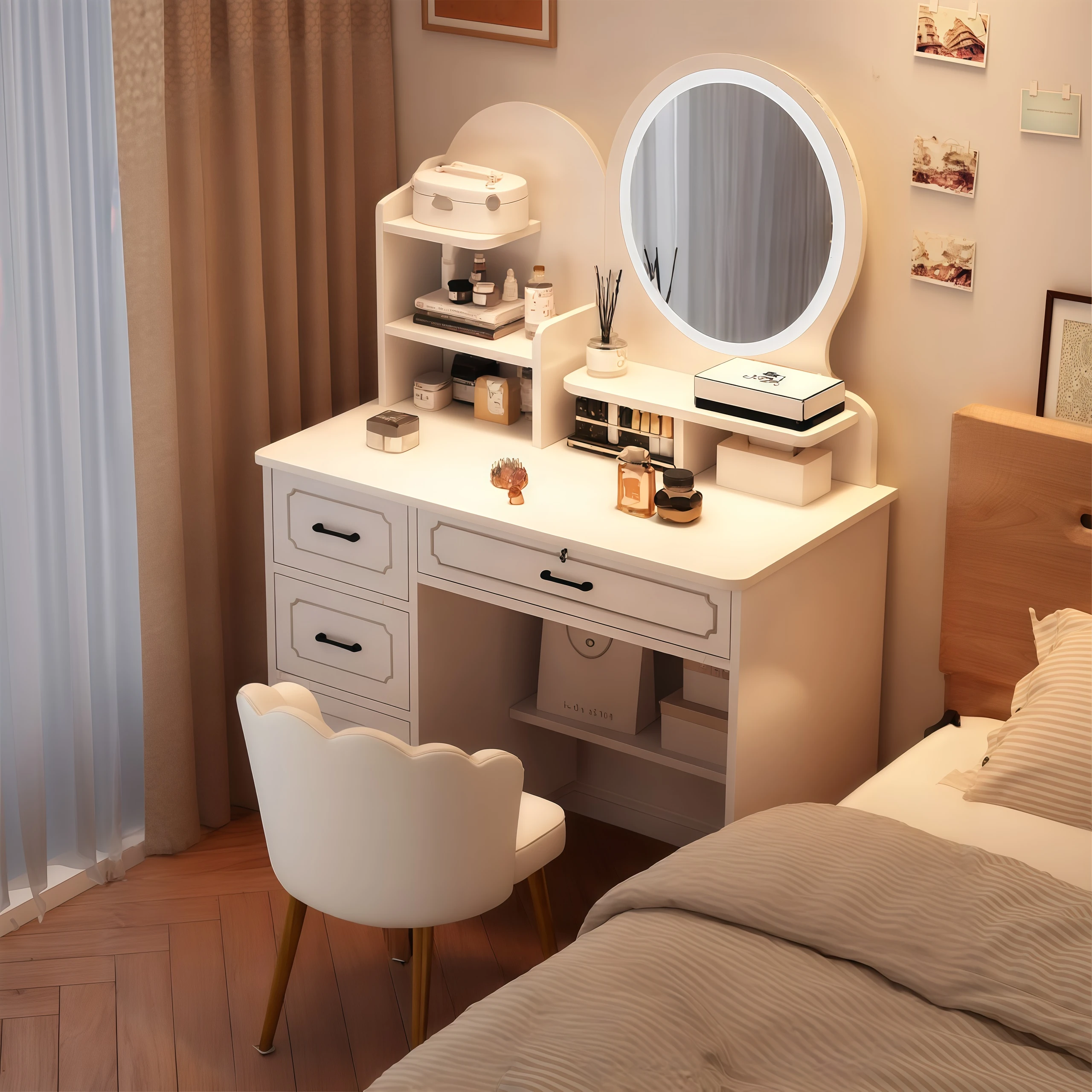 2025年新款!小户型向けの軽奢華なドレッシングテーブルと化粧鏡。モダンでシンプルなデザイン、あなたの寝室を一層引き立てる美しさを実現します!