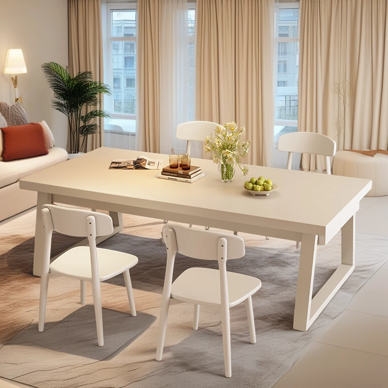 ホワイトダイニングテーブル&チェアセット|フレンチクリームスタイルの大きなテーブル|家庭用・業務用に最適|カフェにもぴったりなデザインで、食事を楽しむひとときを演出します!