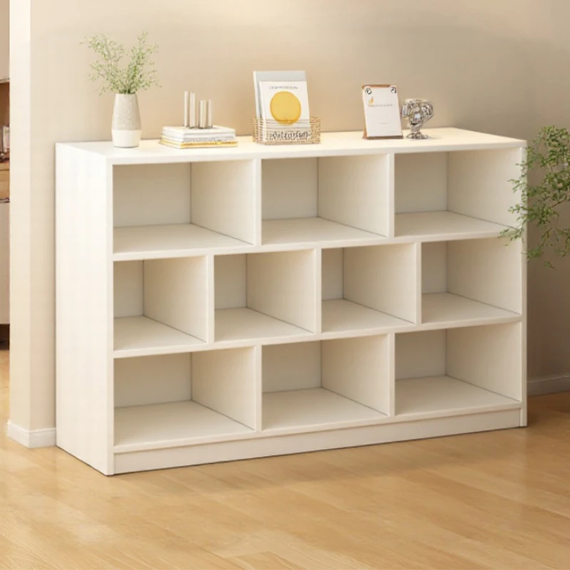 クリーム風の本棚収納キャビネット一体型壁寄せグリッドキャビネット 学生用書架 フロアスタンド 多段ラック【おしゃれで機能的!】収納力抜群でお部屋をスッキリ整頓!