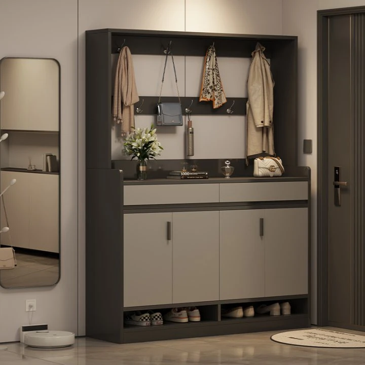 2025年新作!入戸用シューズキャビネット - 玄関にぴったりな大容量・多層収納で、衣類や帽子もスッキリ整理!壁にぴったりフィットして、スペースを有効活用!おしゃれで実用的な収納家具です。