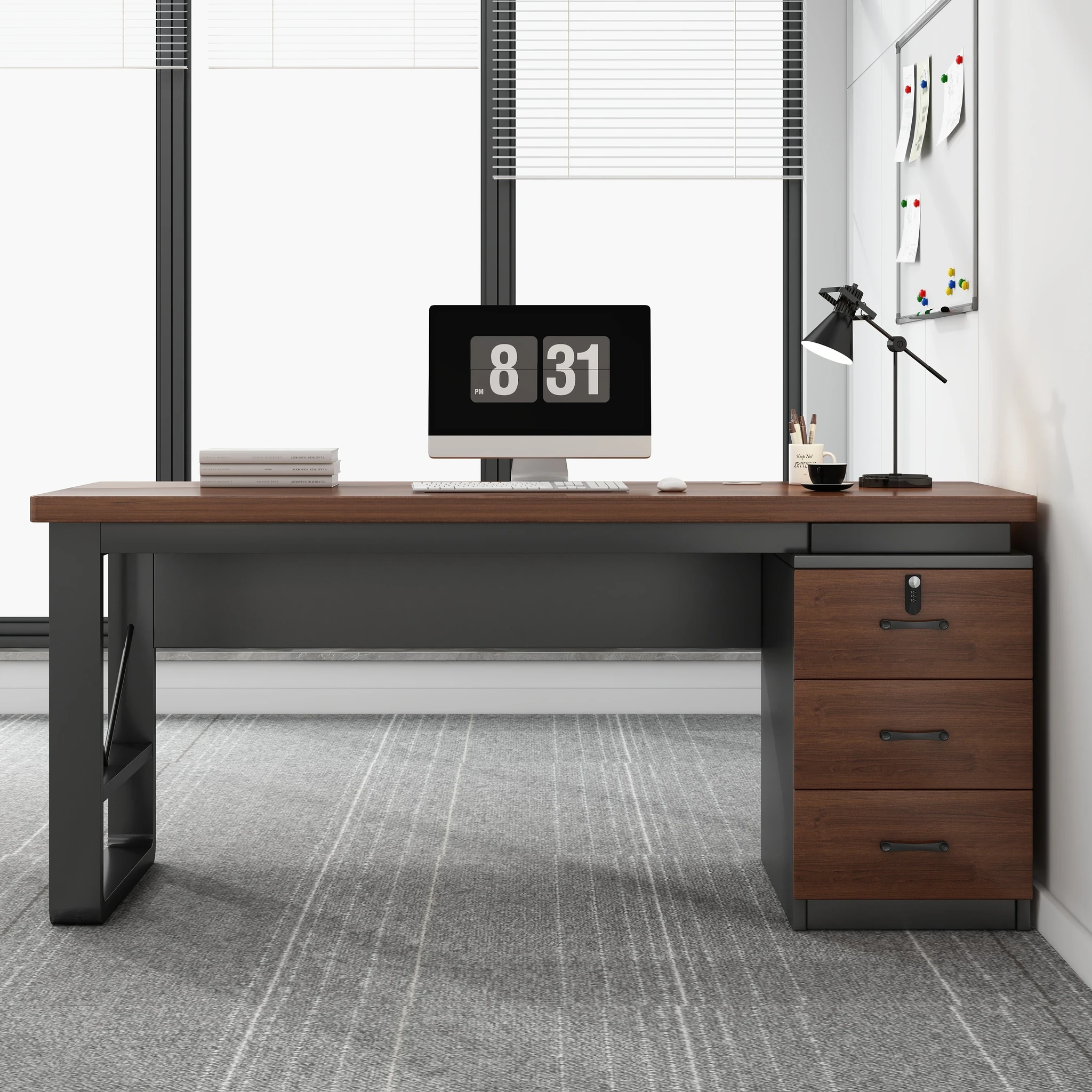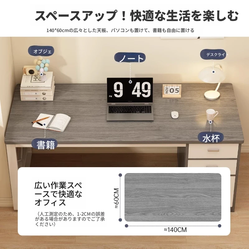 シンプルでスタイリッシュなデスク|現代的なスチールフレームのオフィスデスク|寝室や家庭に最適|引き出し付きで便利な作業台|快適な作業空間を提供します!