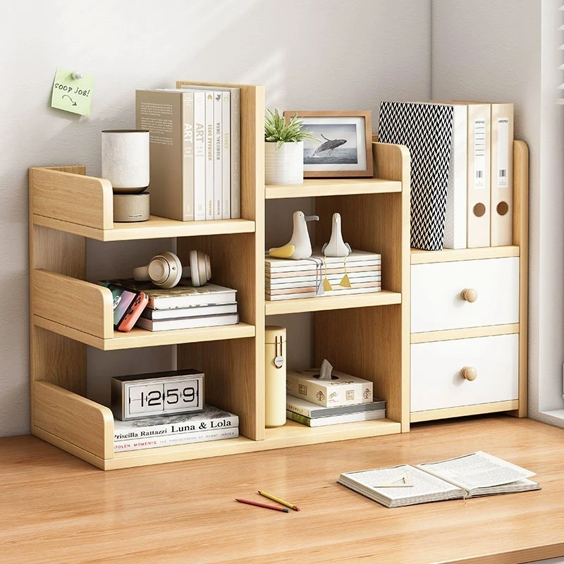 デスク上の収納に最適!学生向けマルチファンクショナルブックシェルフ - ベッドサイドやオフィスでも使えるシンプルで便利な小型書棚。整理整頓でお部屋をスッキリ!