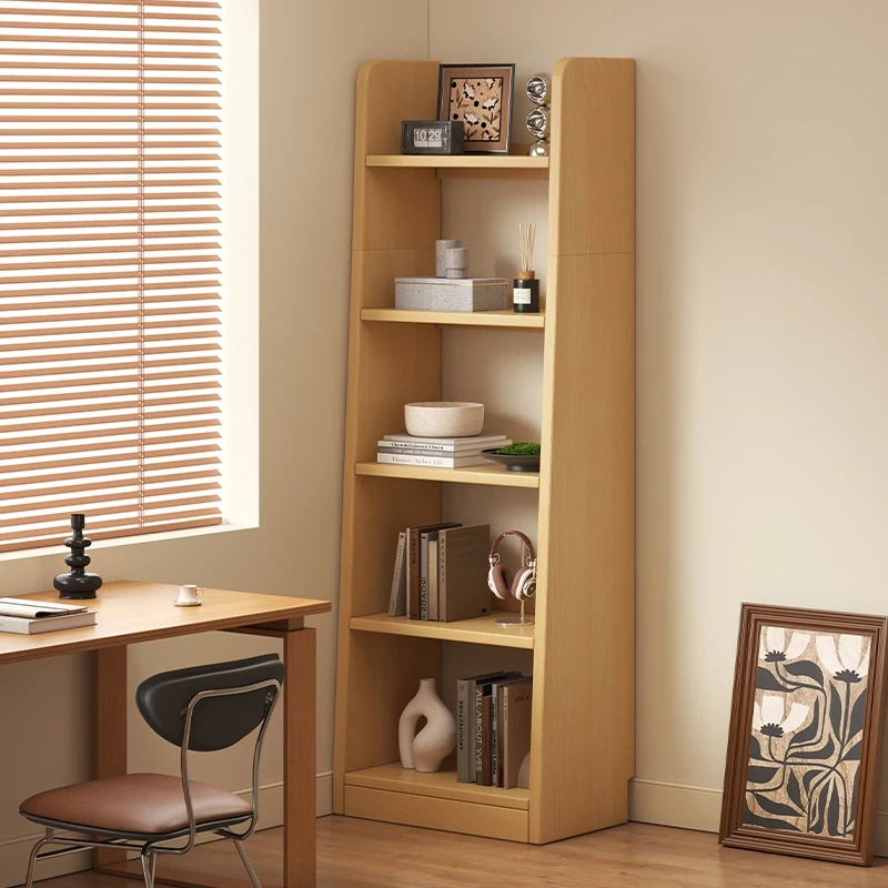 ナチュラルウッド風のスタンド式本棚 - スペースを取らない収納キャビネット!狭い隙間にもフィットするスリムデザインの書庫。リビングや書斎で素敵にディスプレイできます。
