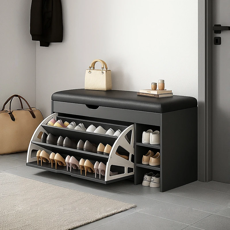2025年新作!多層シューラック&スニーカーベンチ - 家庭用玄関に最適な収納一体型イタリアンシューキャビネット!座れる便利さとおしゃれなデザインで、靴の整理が簡単に!