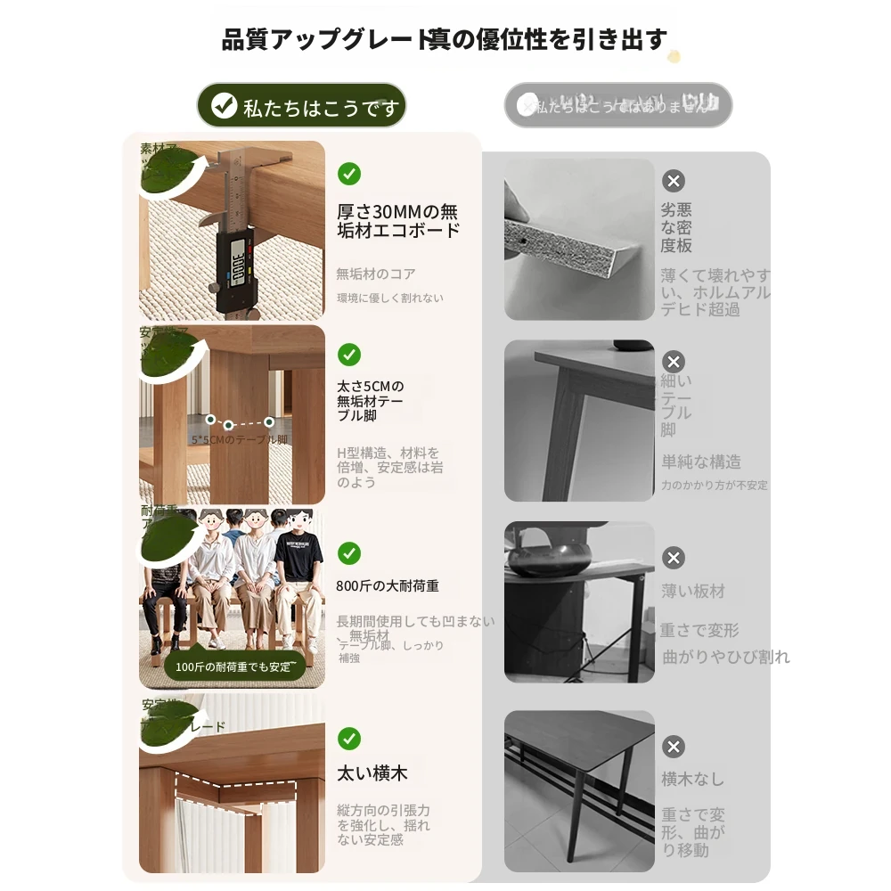 北欧風モダンデザインのダイニングテーブルセット!シンプルでスタイリッシュな長方形テーブルとチェアの組み合わせ。リビングやワークスペースにぴったりな天然木製の大テーブルで、家族や友人との楽しい食事のひとときを演出します!